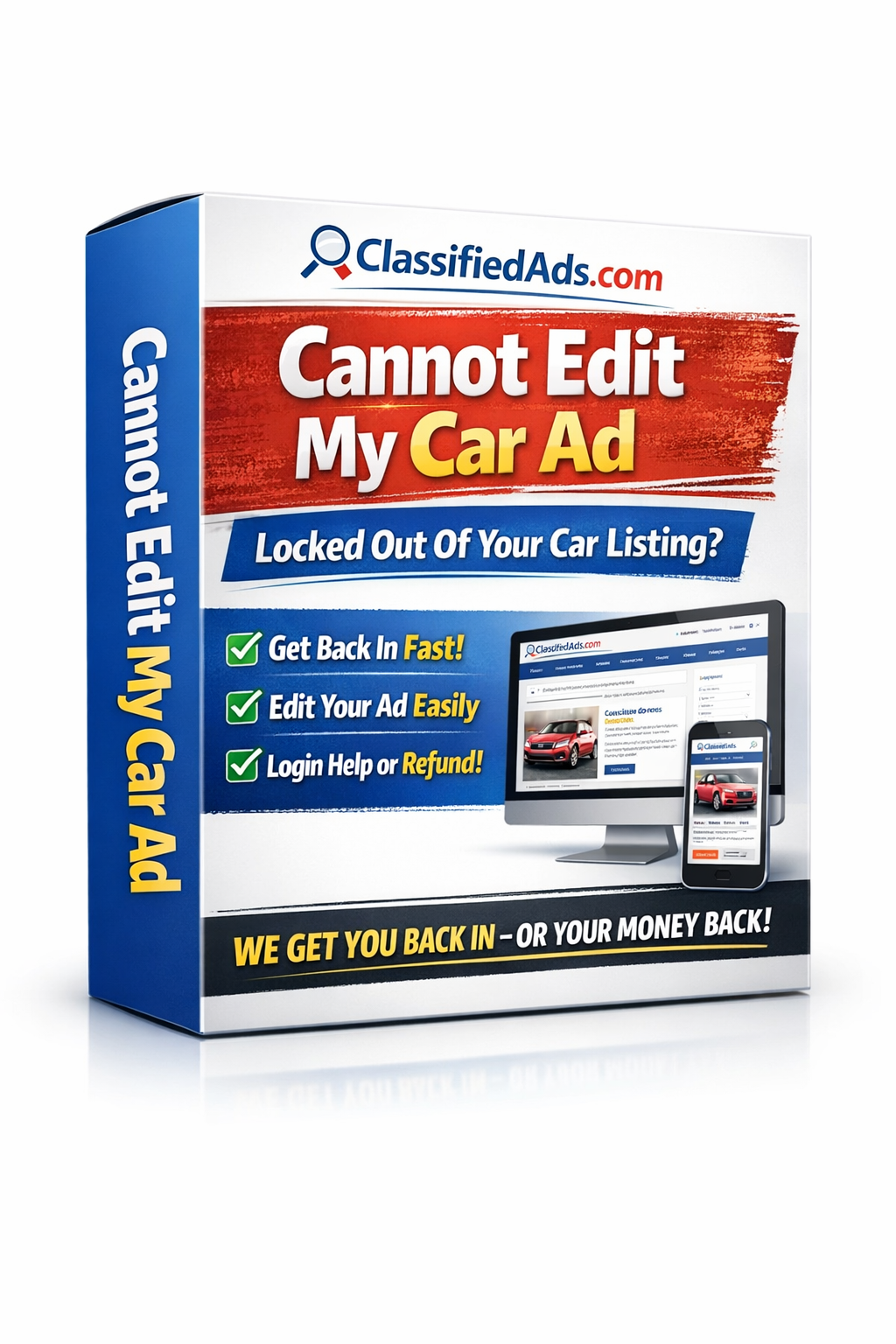 Locked out of your car ad? We fix it fast. This service is built for users who can’t log in, can’t edit, or feel stuck on ClassifiedAds.com.. We help you recover access, edit your ad, or get a refund — all within days.